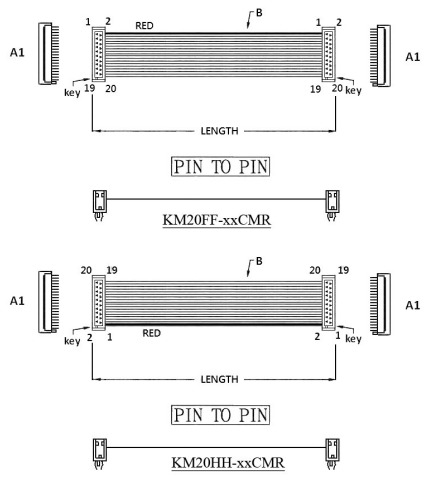 1.27MM PITCH FLAT CABLE WITH 2.54MM PITCH MICRO MATCH JACK TO JACK: ORDERING INFORMATION: 1. NO. OF CONTACTS: 04, 06, 08, 10, 12, 14, 16, 18, 20, 22, 24, 26 2. CONSTRUCTION TYPE: FF, GG, HH, JJ 3. LENGTH IN CM (CENTIMETERS) 4. COLOR OF TWO IDC CONNECTORS: “R” RED – Page 9 –