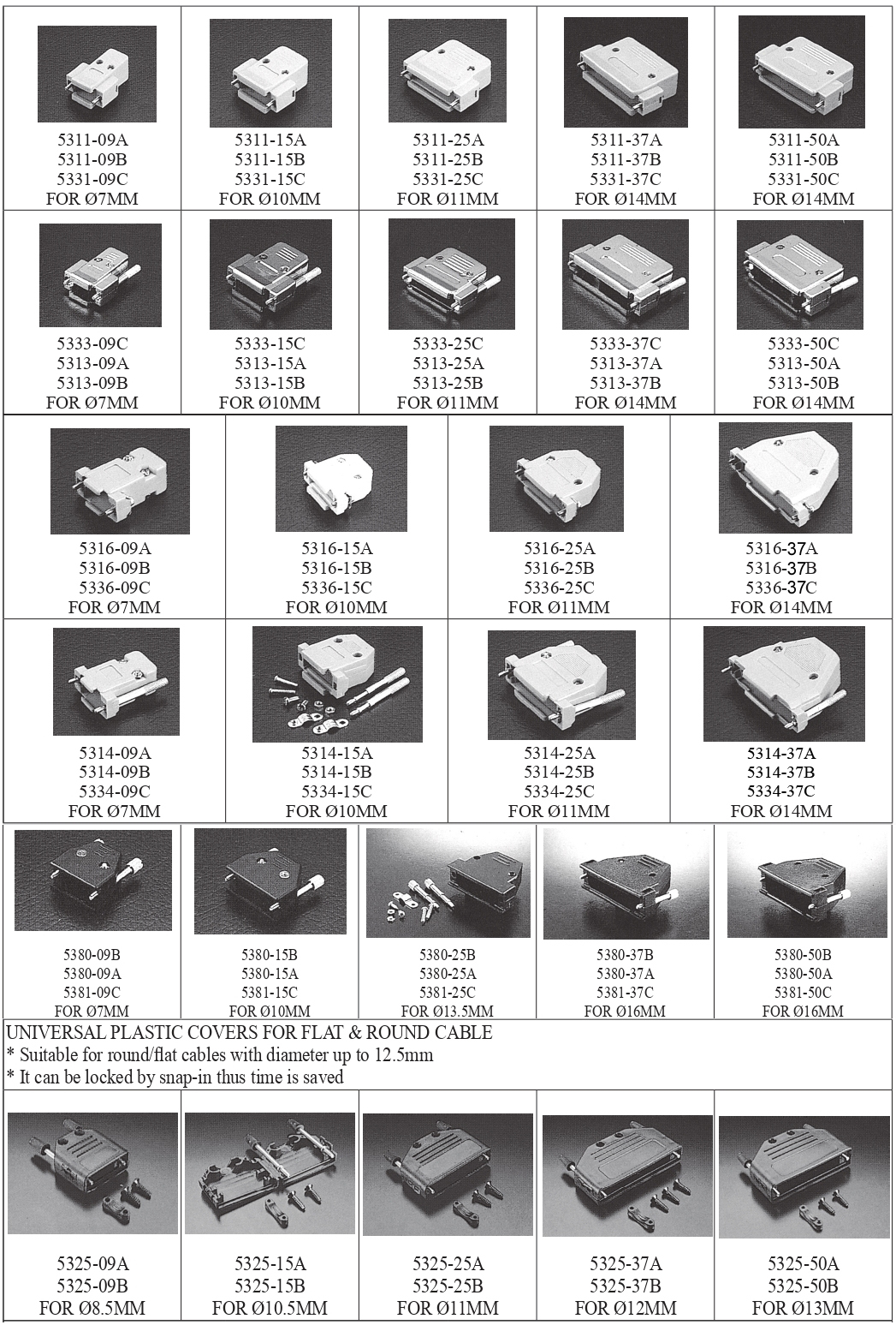 PLASTIC HOODS FOR D-SUB. CONNECTORS