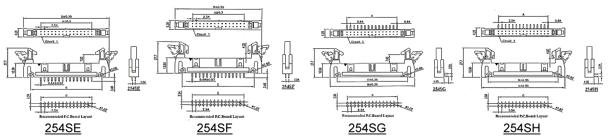 254SH-xxxxx | 2.54mm | Right angle DIP | short lever | 010~064 | |